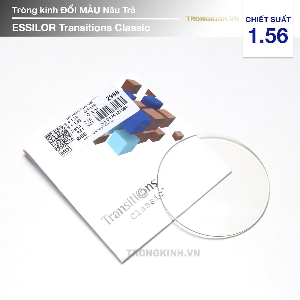 Tròng kính Essilor Transitions Classic là tròng kính đổi màu bán chạy nhất thế giới, bởi giá cả hợp lý mà tròng kính đổi màu thời trang thông dụng cùng khả năng chống ánh sáng xanh tím có hại.